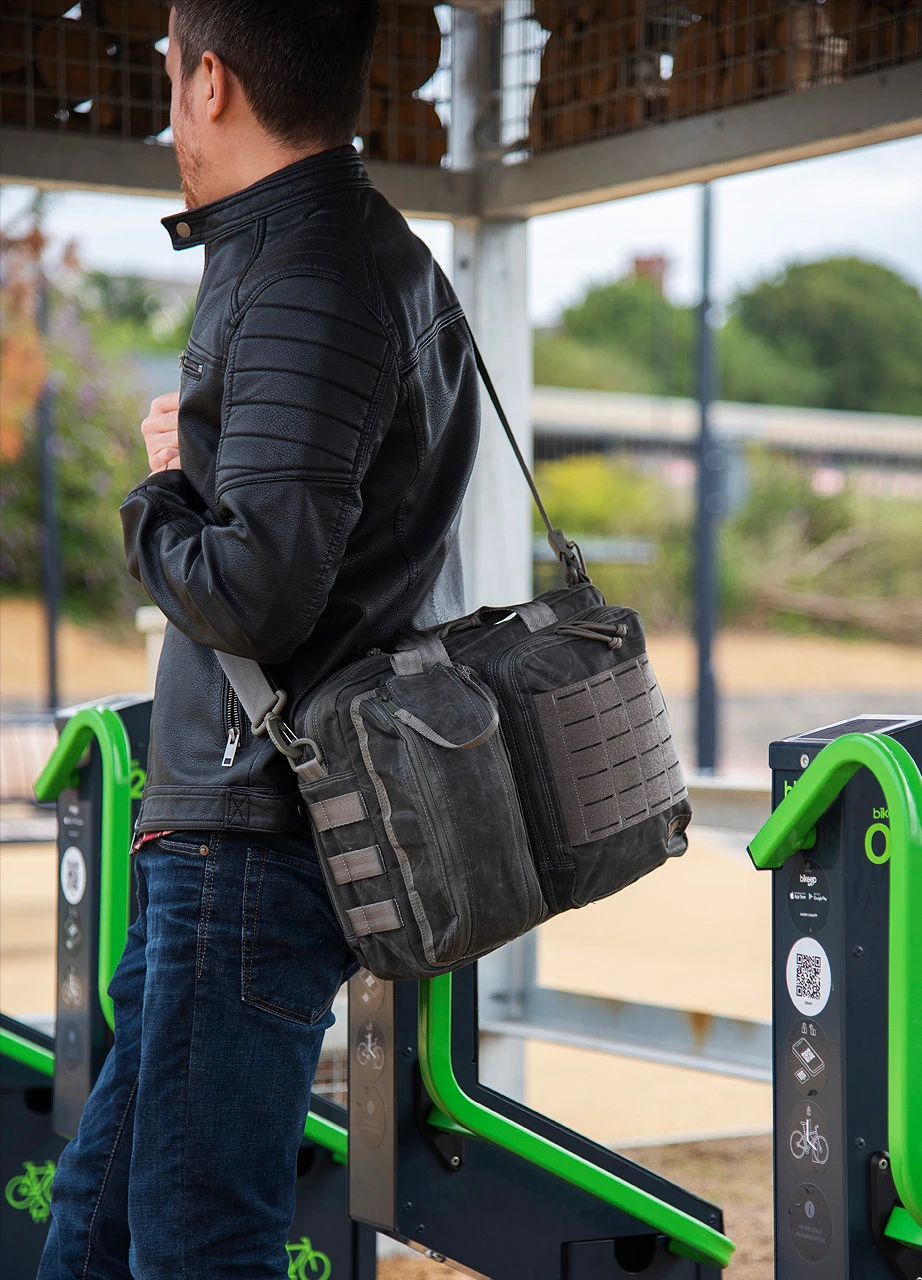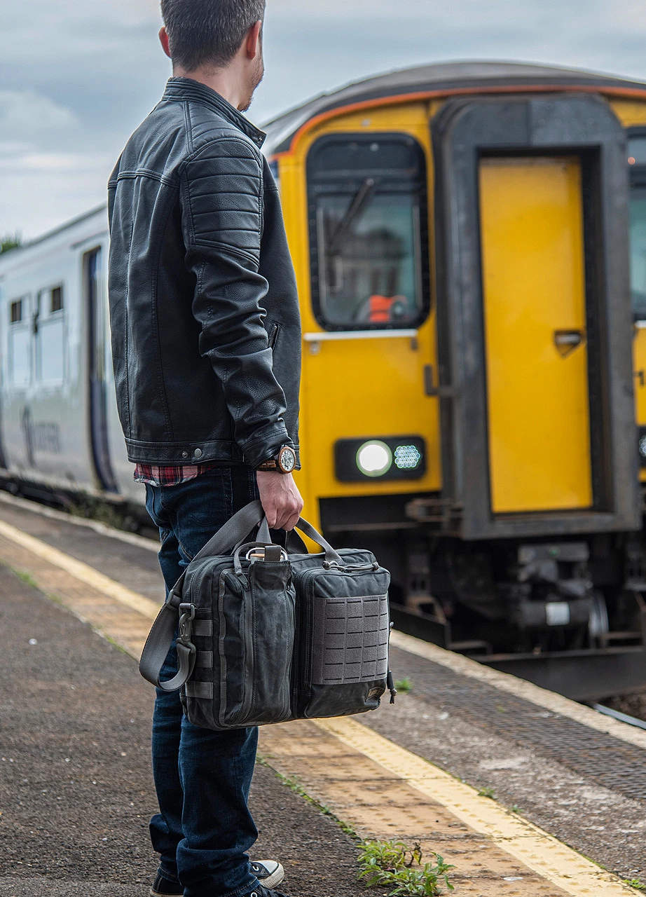 The Magforce Recruit Briefcase is the perfect bag to get organised in the workplace. This Waxed Cotton Canvas version is not only incredibly tough and water resistant but looks pretty damn cool too! There is a choice of brown or black both with a weathered look.