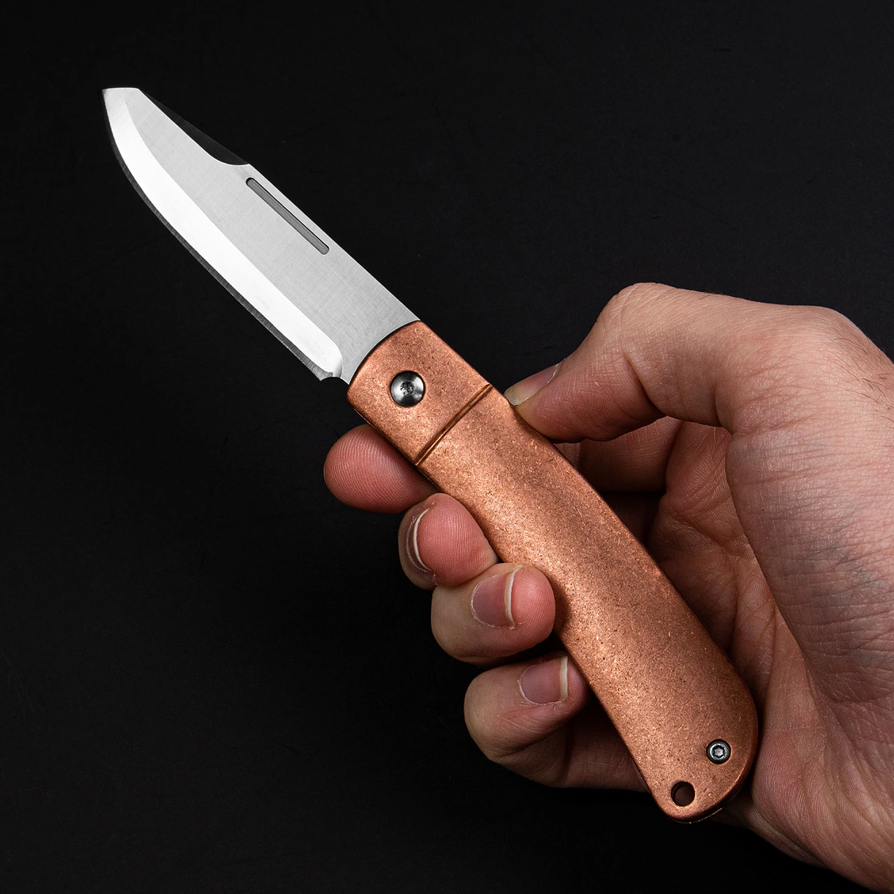 Weighing in at 150 grams, the Rough Rider APTA Folder Copper has a real presence in your pocket and your hand. The blade is made from VG10 stainless steel and ultra sharp out-of-the-box. A lanyard hole in the handle will allow you to make the knife your own.