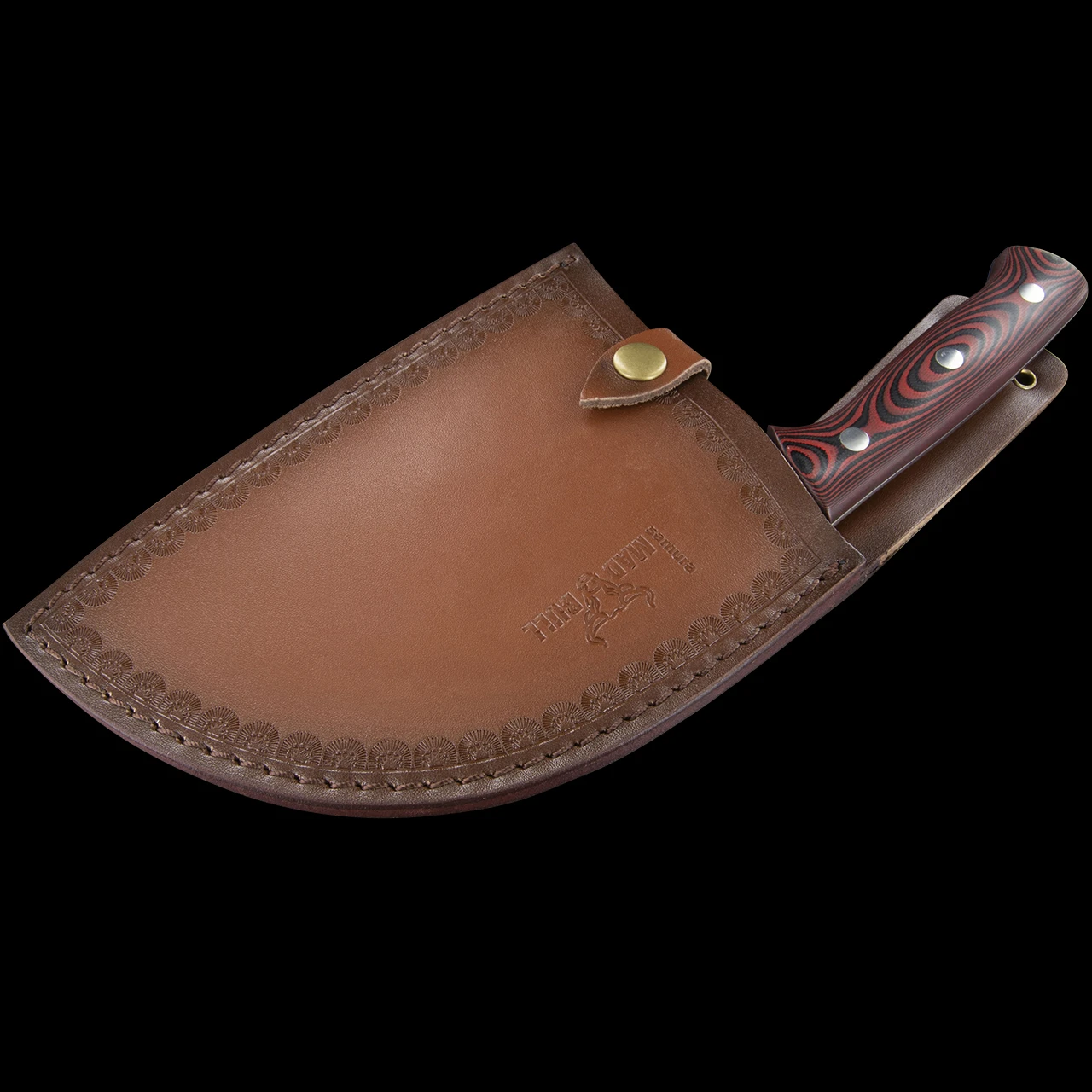 Hand forging provides a unique look for each chopper. It is supplied with a leather sheath.